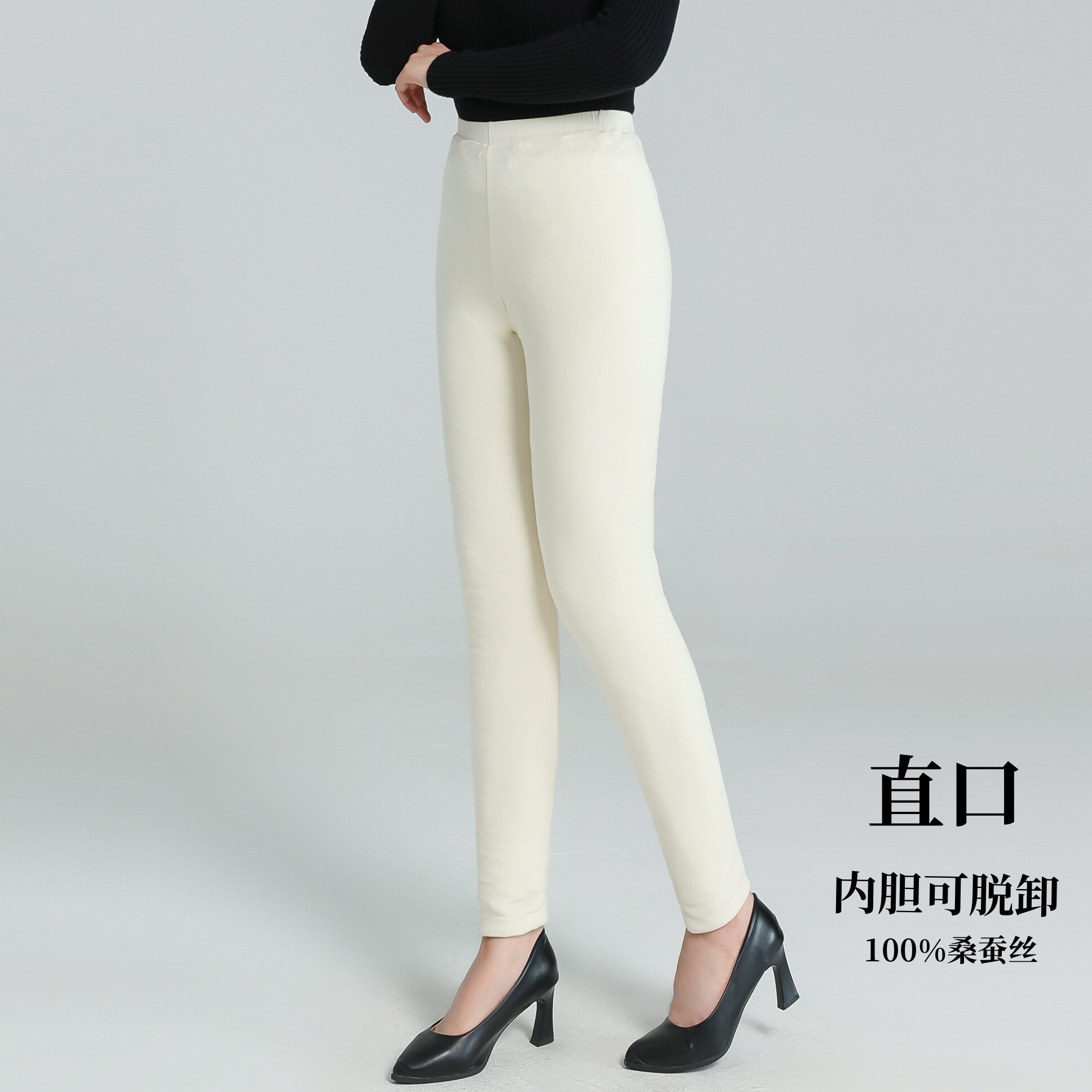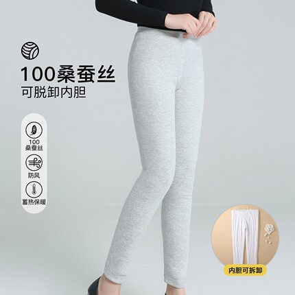 100%桑蚕丝棉裤女可脱卸修身加厚