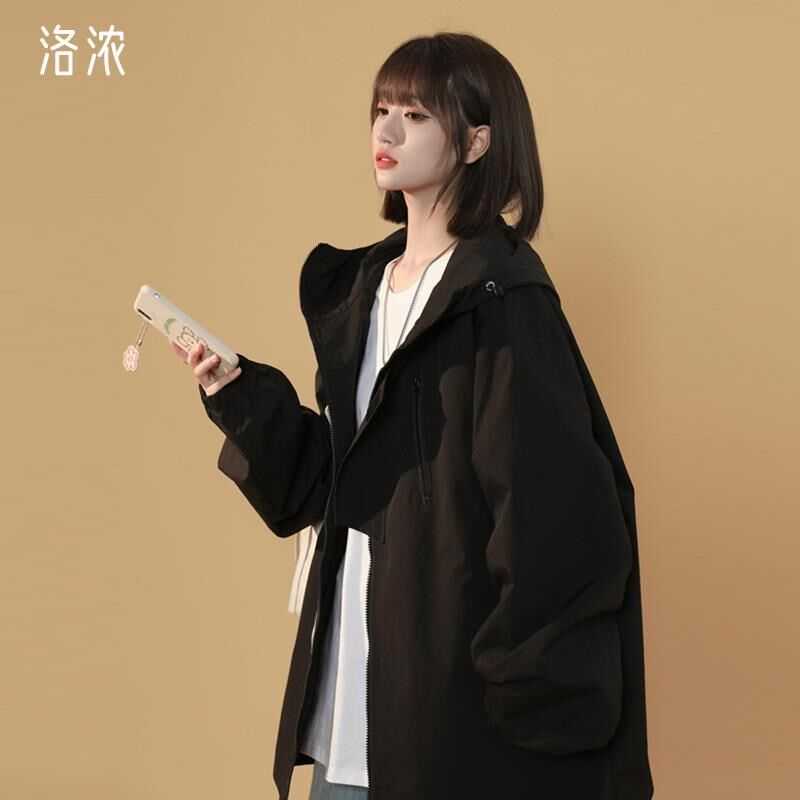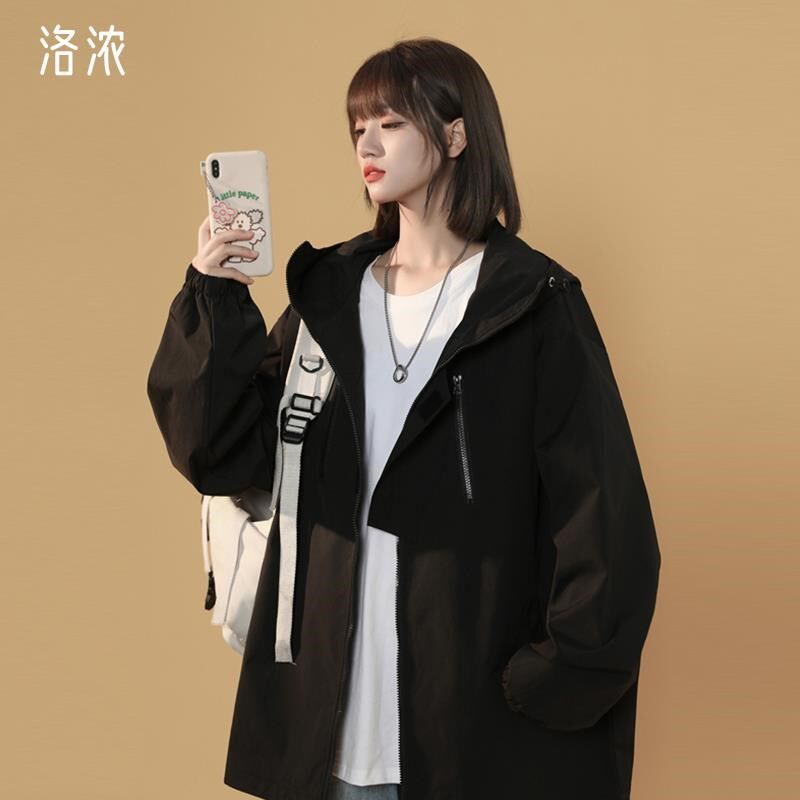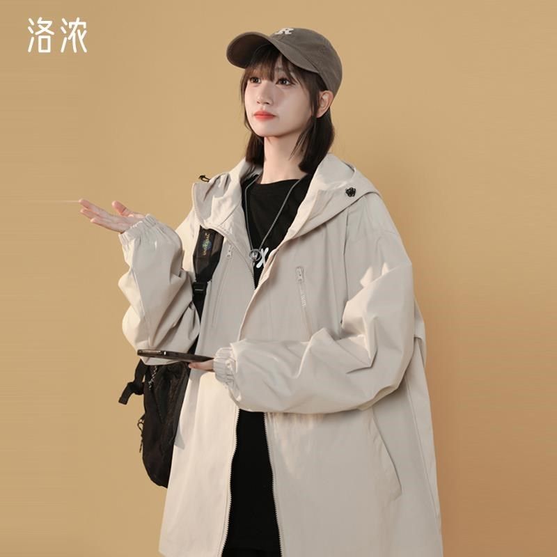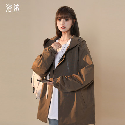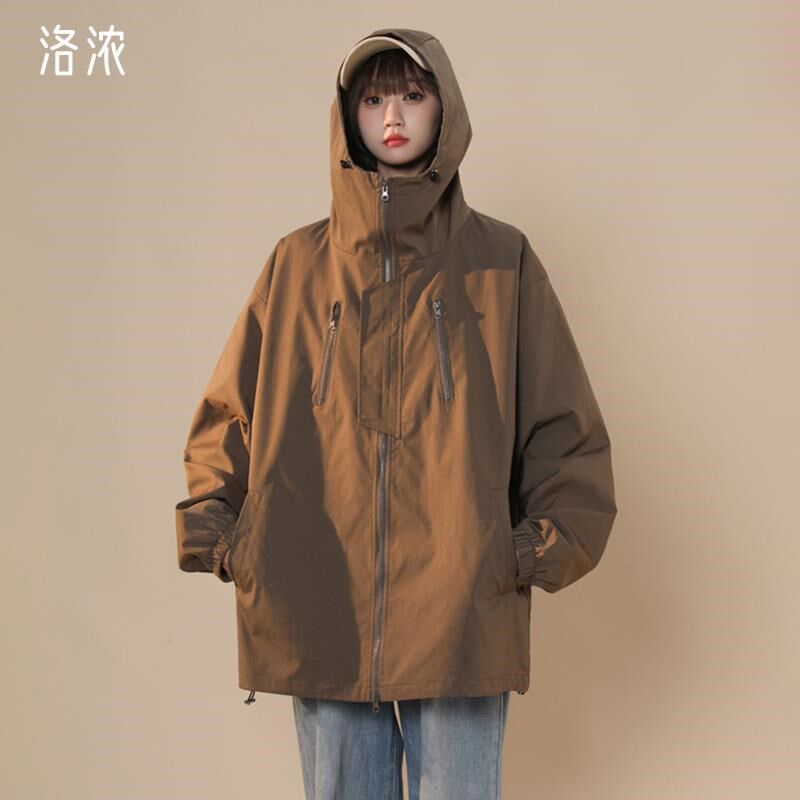 洛浓无性别秋季防水冲锋衣男女风B衣夹克连帽机能工装外套高街学