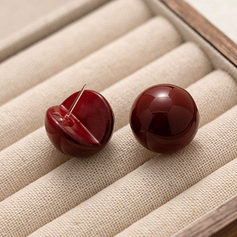 塑料针复古夸张大珍珠耳钉高级感车厘子红色耳环养耳洞新年耳饰女