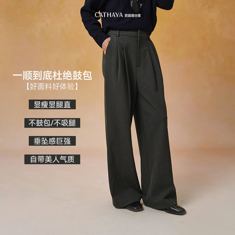CATHAYA凯喜雅高腰长裤女直筒百搭通勤西裤阔腿裤CFK2FKJLA98