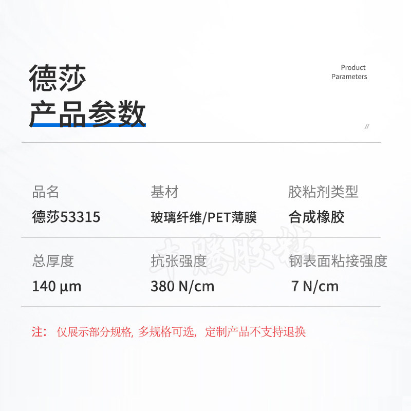 tesa德莎53315玻璃纤维胶带金属卷料末端封尾耐拉耐磨移除无残胶