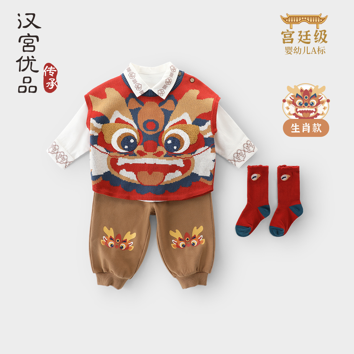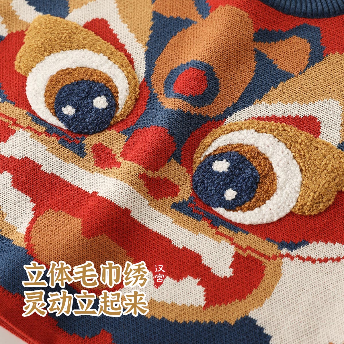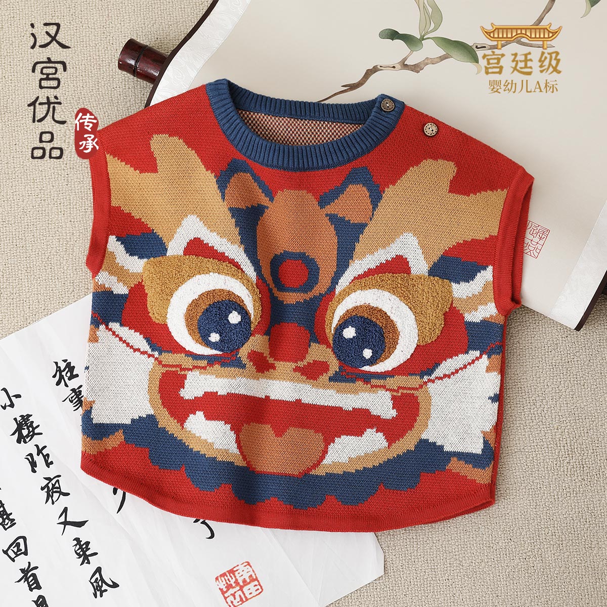 儿童针织马甲中国风婴幼儿马褂春秋龙宝宝背心男童马夹女童毛线衣