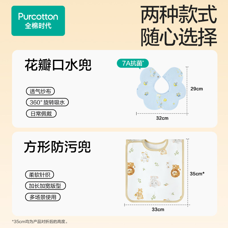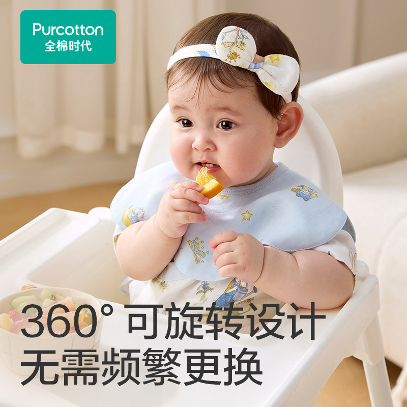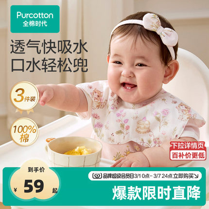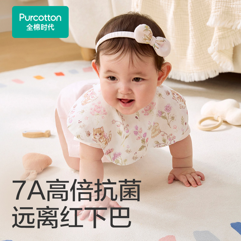 全棉时代婴儿口水兜宝宝纱布花瓣口水巾吃饭吸水吐奶围嘴3条装