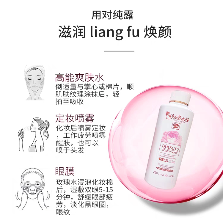 土耳其玫瑰水原装进口大马士革玫瑰纯露补水保湿爽肤水一次蒸馏