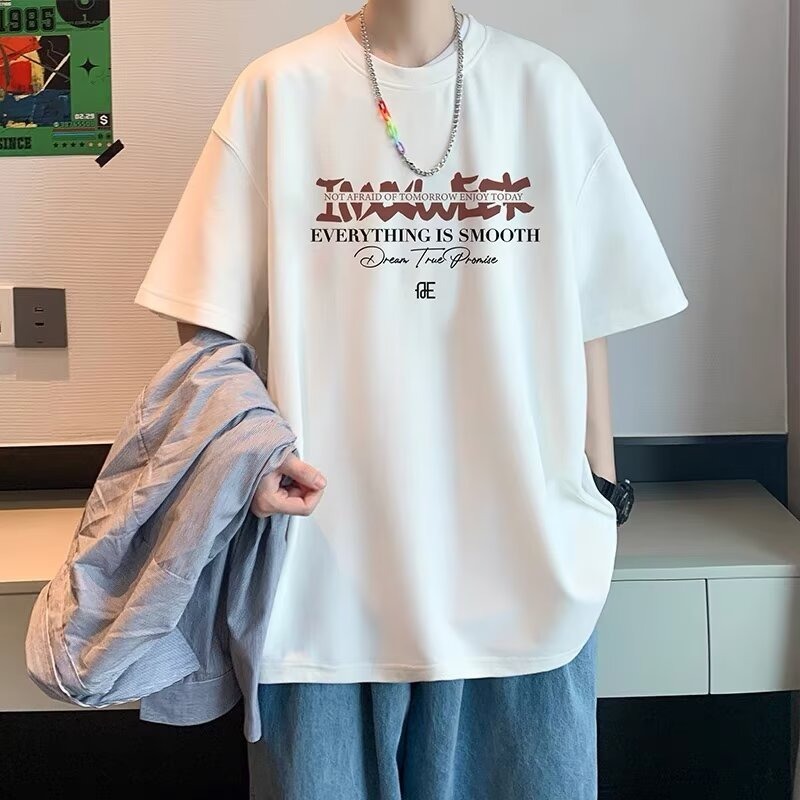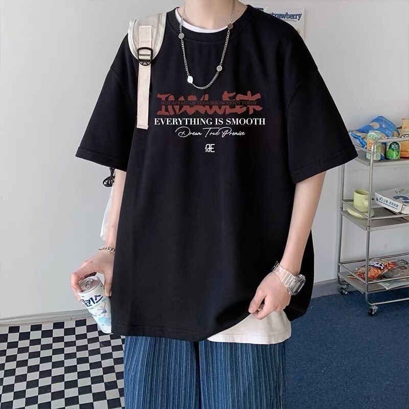 夏季纯棉美式学生短袖t恤套装男生宽松休闲男装一套搭配潮流体恤