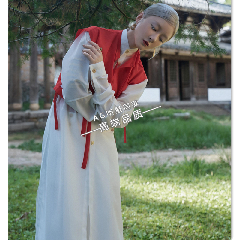 徐娇同款红色新中式马甲背心无袖外套白色衬衫裙连衣裙长裙子汉服