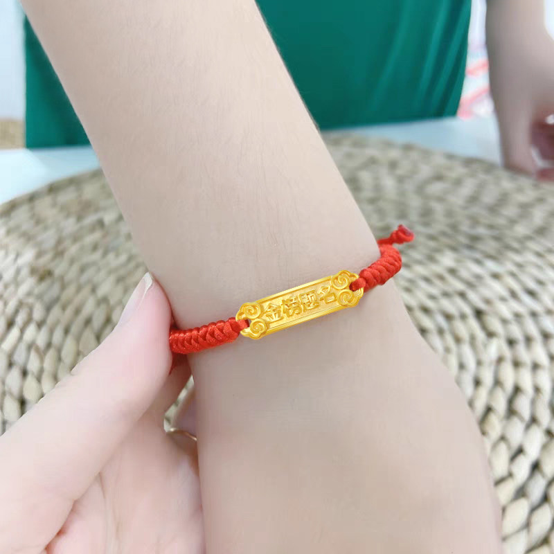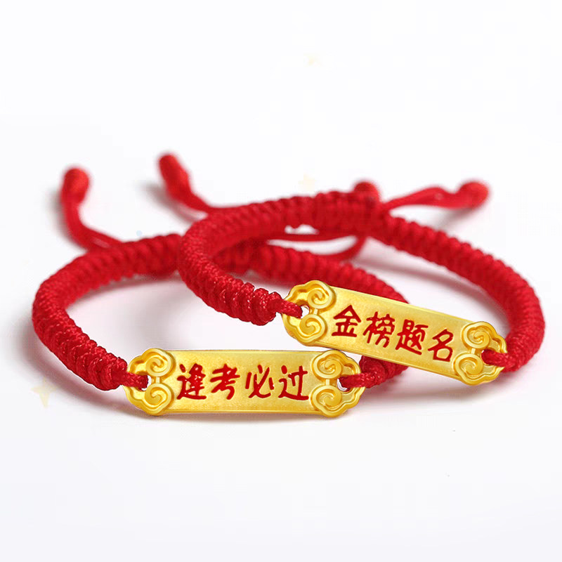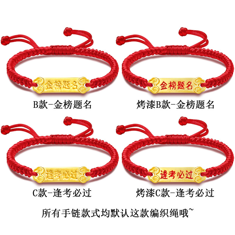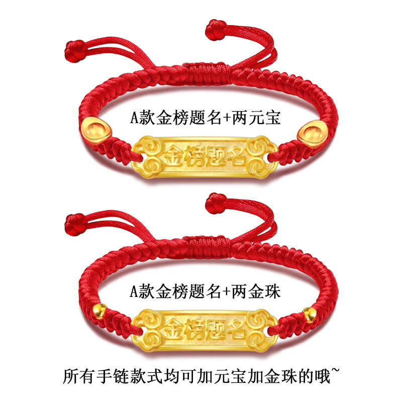 999黄金手链红绳金榜题名中考手绳逢考必过3D硬金足金手串金饰品