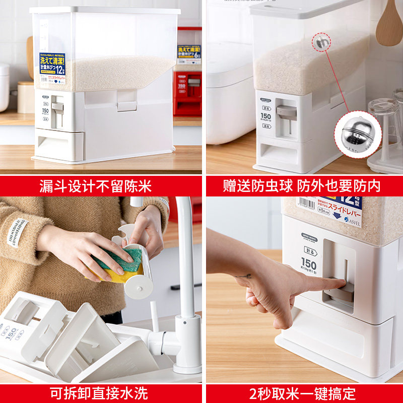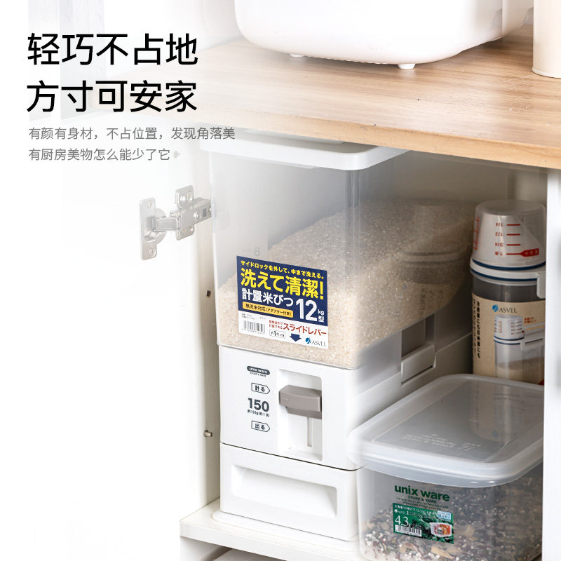 日本asvel密封防虫米桶自动出米 窄型家用米箱防潮米缸装米桶10斤