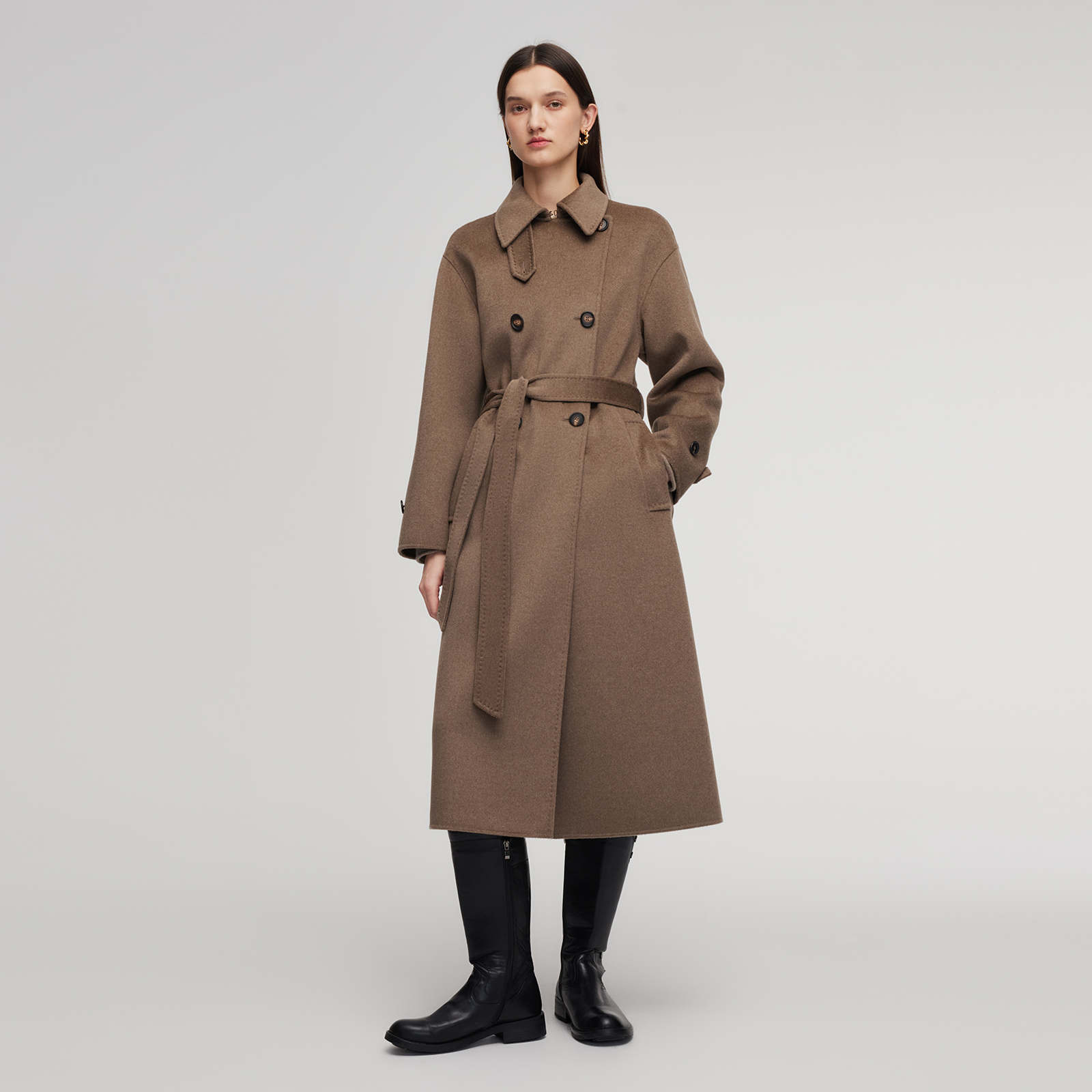 歌莉娅风衣式羊毛羊绒大衣长外套
