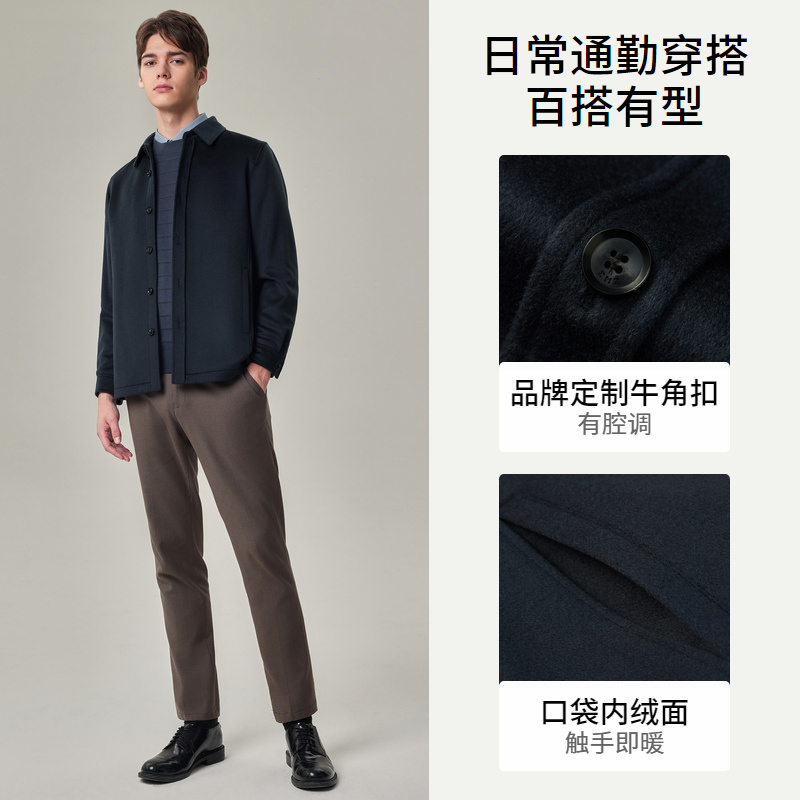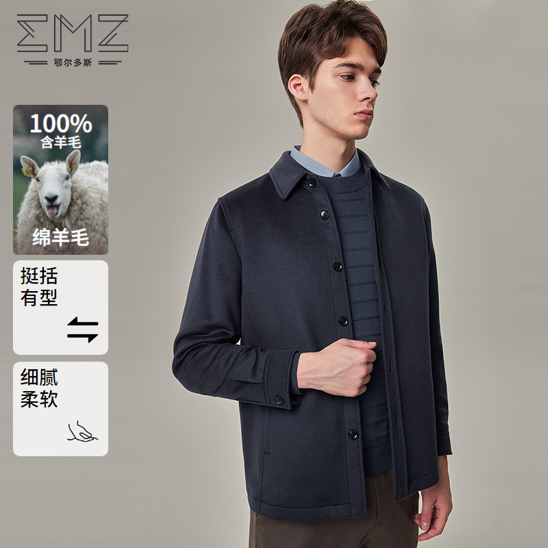 【纯羊毛】emz鄂尔多斯秋冬高级感商务休闲翻领短款夹克呢外套男