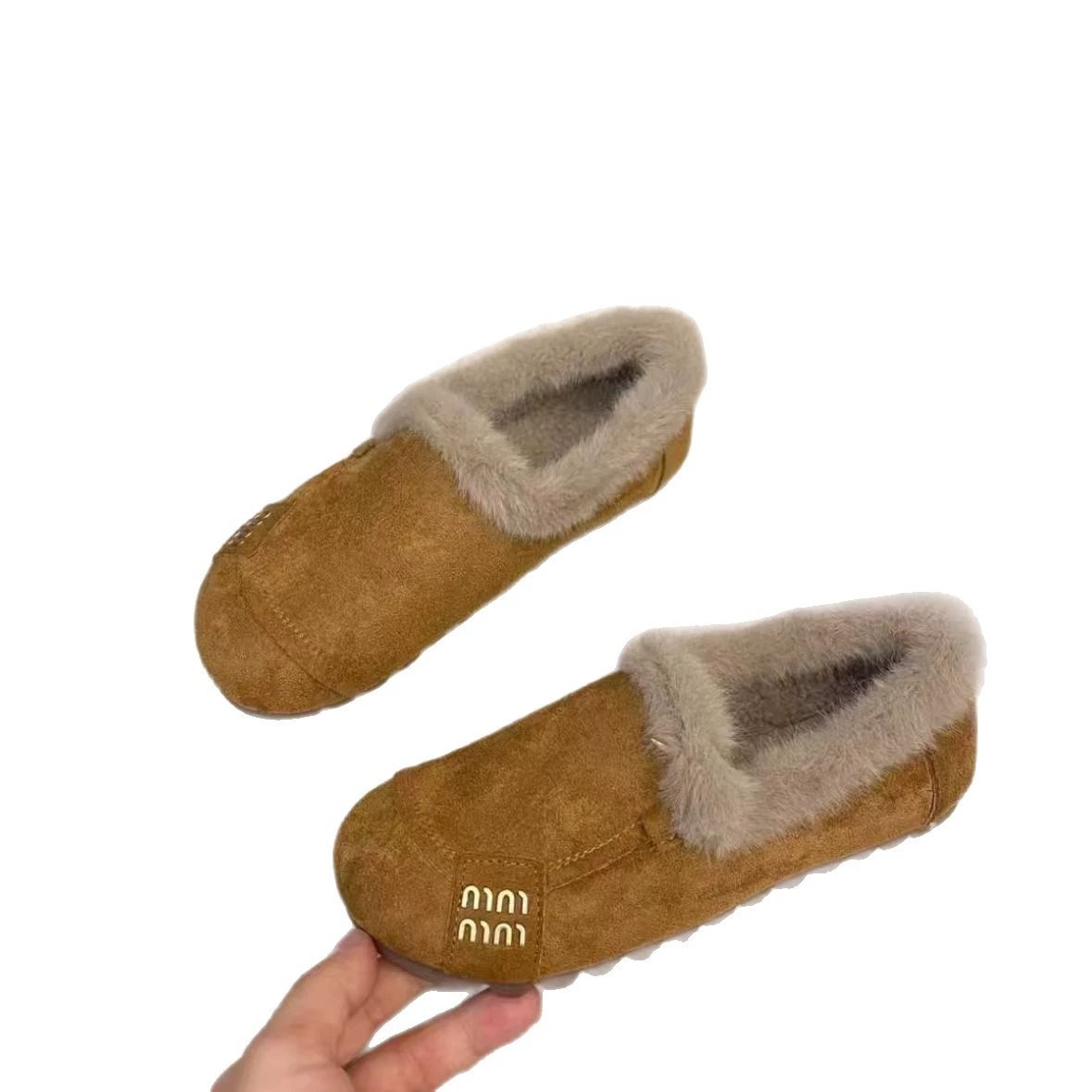 深口冬季平底保暖加绒厚底豆豆鞋防滑休闲女鞋一脚蹬d
