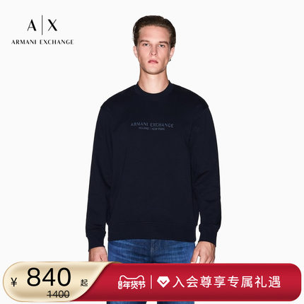 ARMANI EXCHANGE/阿玛尼冬季新款男新年套头宽松重磅运动圆领卫衣
