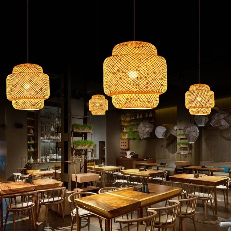 竹编吊灯新中式灯饰藤编禅意茶室餐饮灯日式竹艺灯笼茶楼仿古灯罩