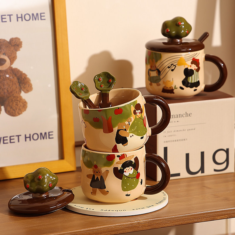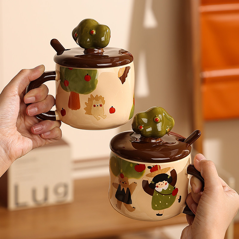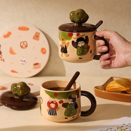 杯子家用马克杯设计感小众带盖勺水杯陶瓷精致漂亮的咖啡杯办公室