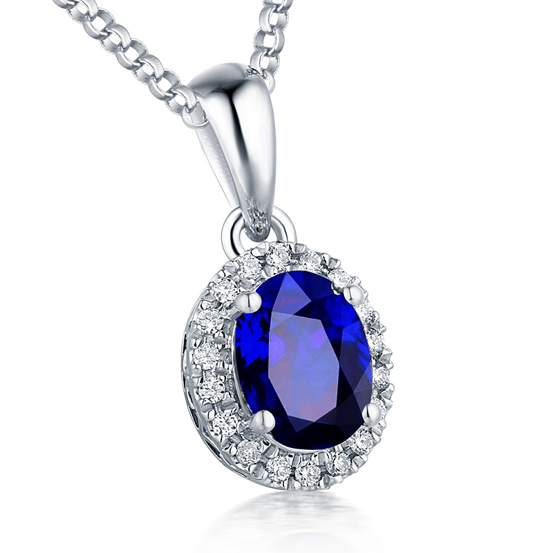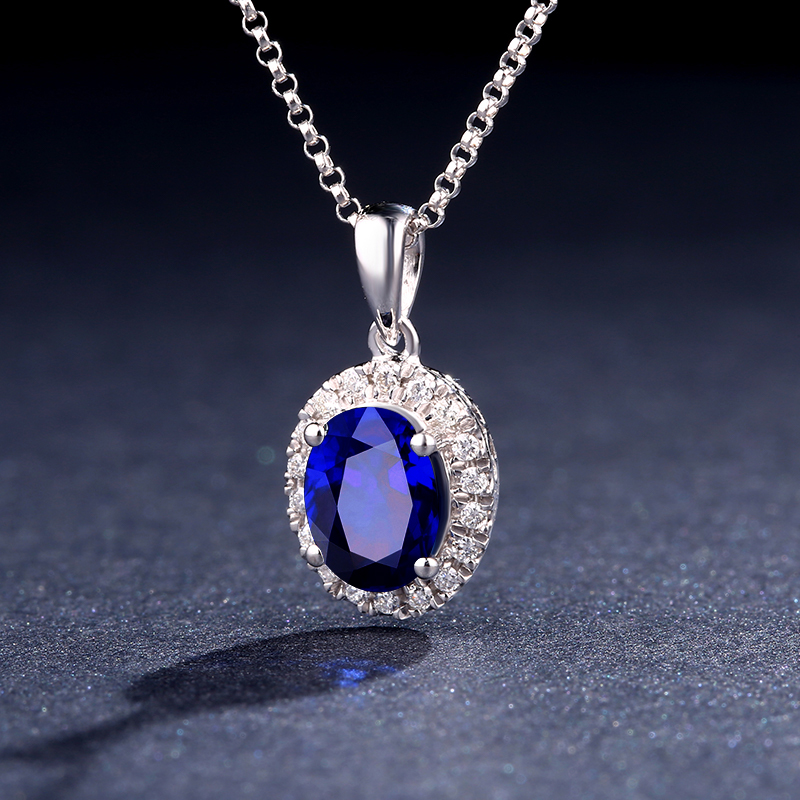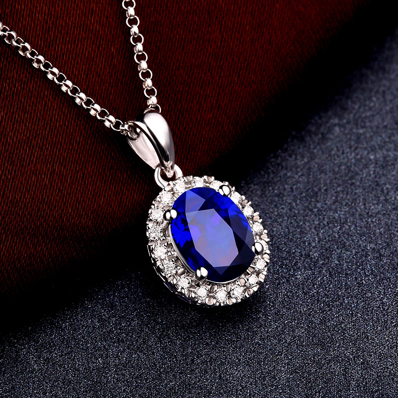 蜜安琪 皇家蓝天然蓝宝石吊坠 18K白金钻石镶嵌珠宝项链彩宝女款