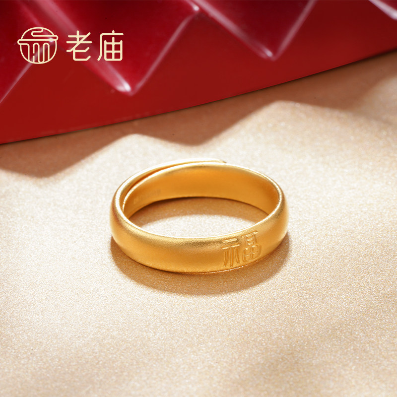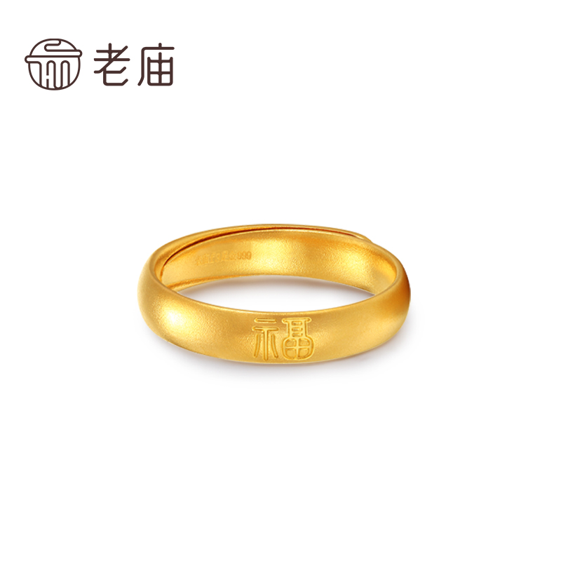 老庙黄金足金古韵优品古法金福运隆昌福字实心活口戒指可调节