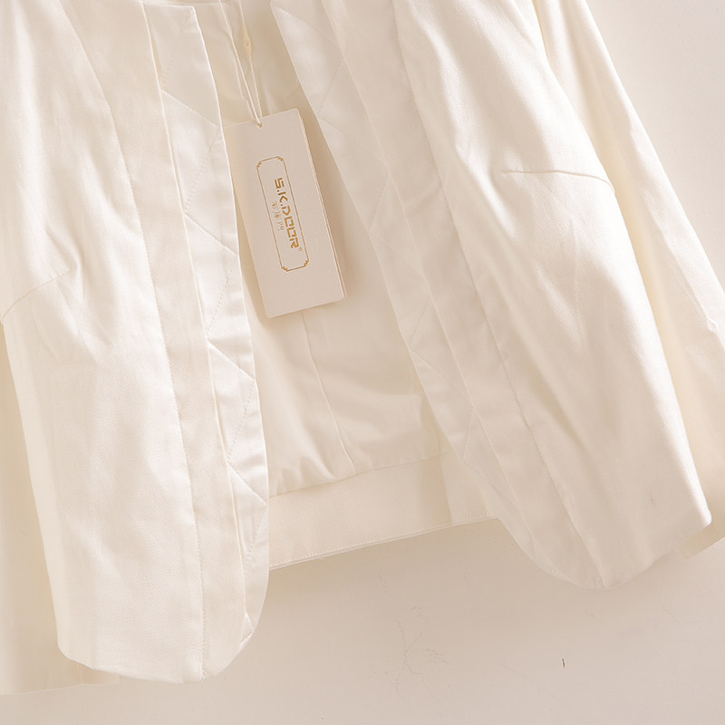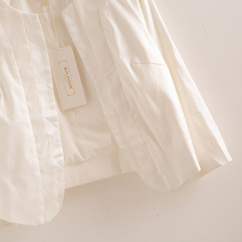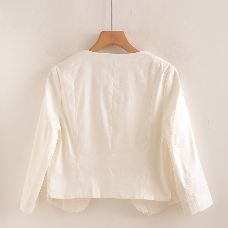 白色棉麻上衣女高端亚麻短款西装外套2025新款夏季无扣汉麻小西服