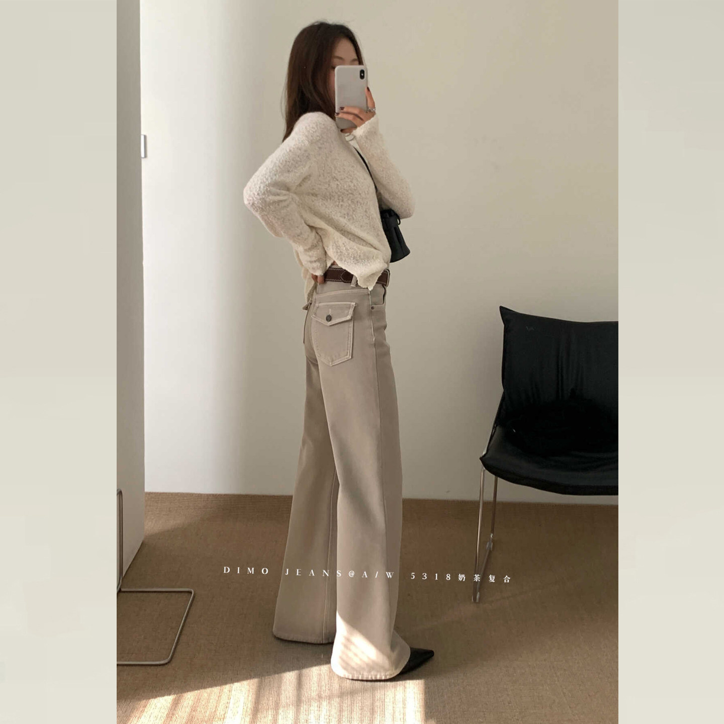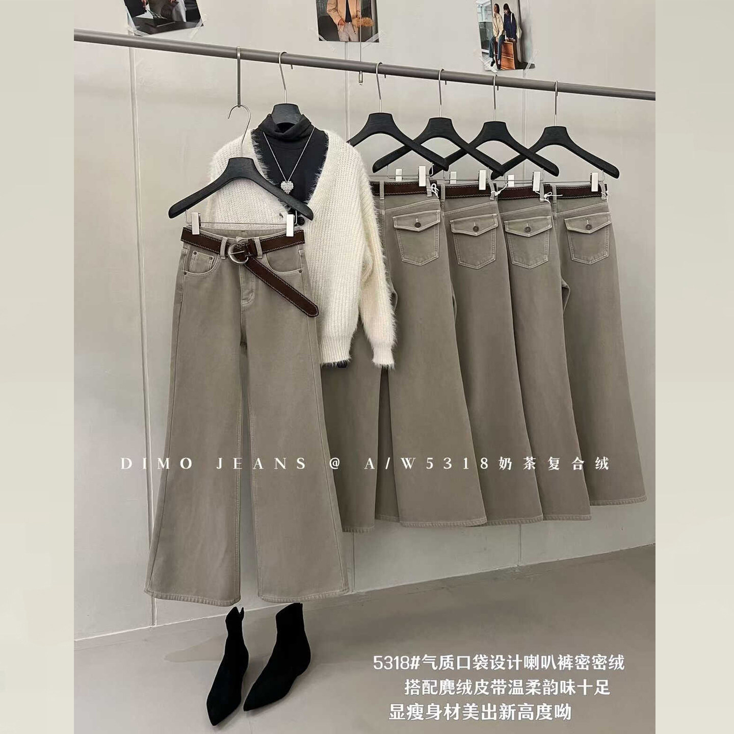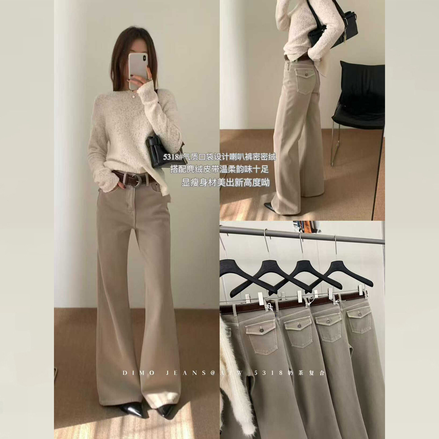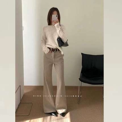 DIMO奶卡色加绒牛仔裤2025新款冬版型超好看好的卡其色裤子微喇裤