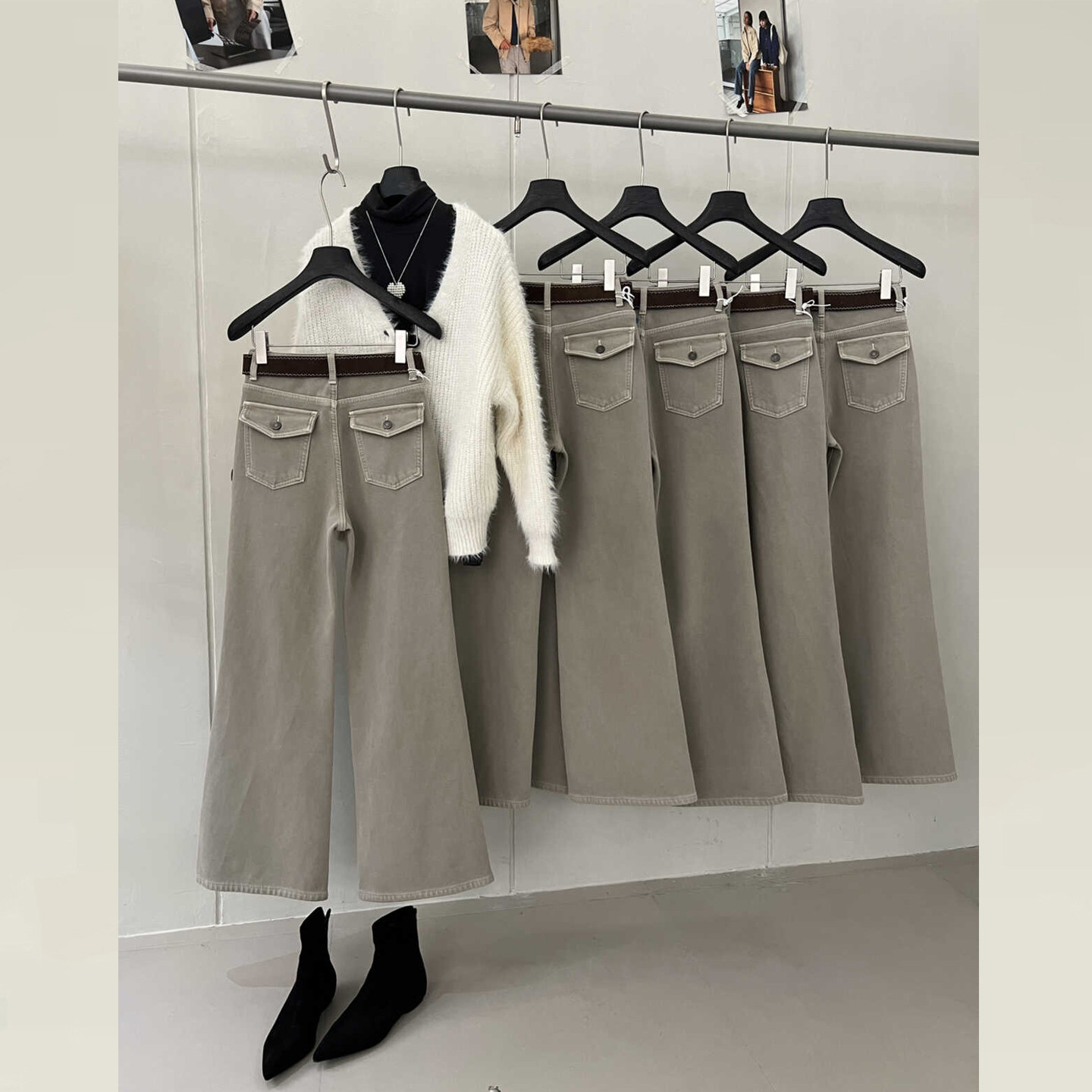 版型超好看的加绒牛仔筒喇裤冬款