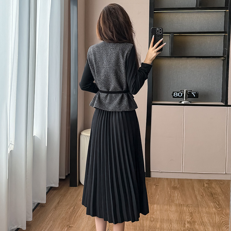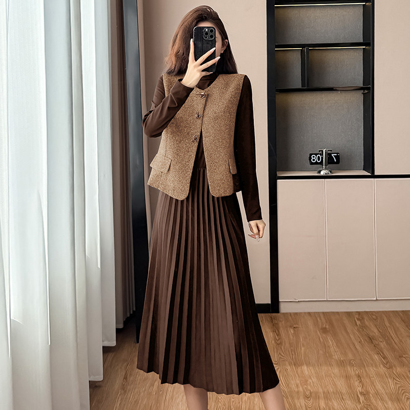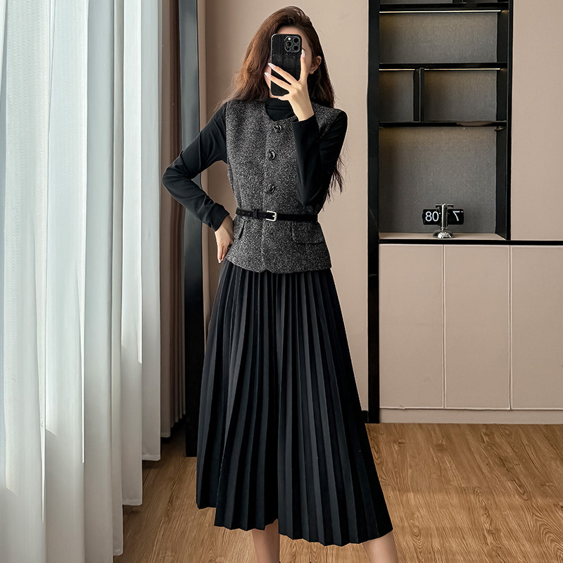 设计感轻奢名媛两件套装裙2025秋冬季新款毛呢马甲背心长袖连衣裙
