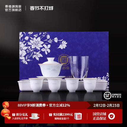 景德镇官方陶瓷三才盖碗家用中式功夫茶具套装高档新款泡茶杯茶盘