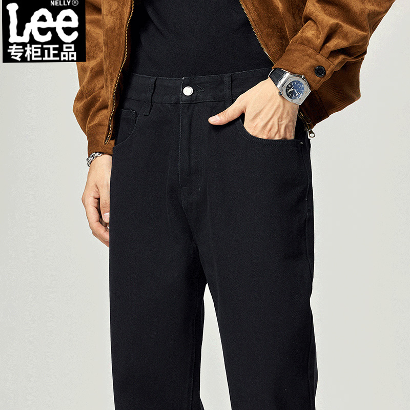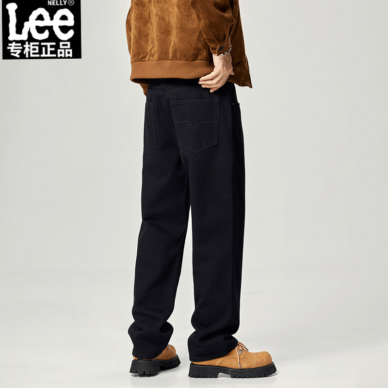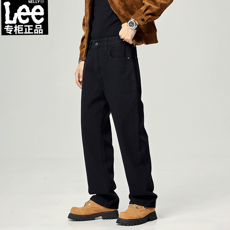 Lee秋冬男士宽松直筒黑色牛仔裤时尚潮牌百搭水洗休闲垂感阔腿裤