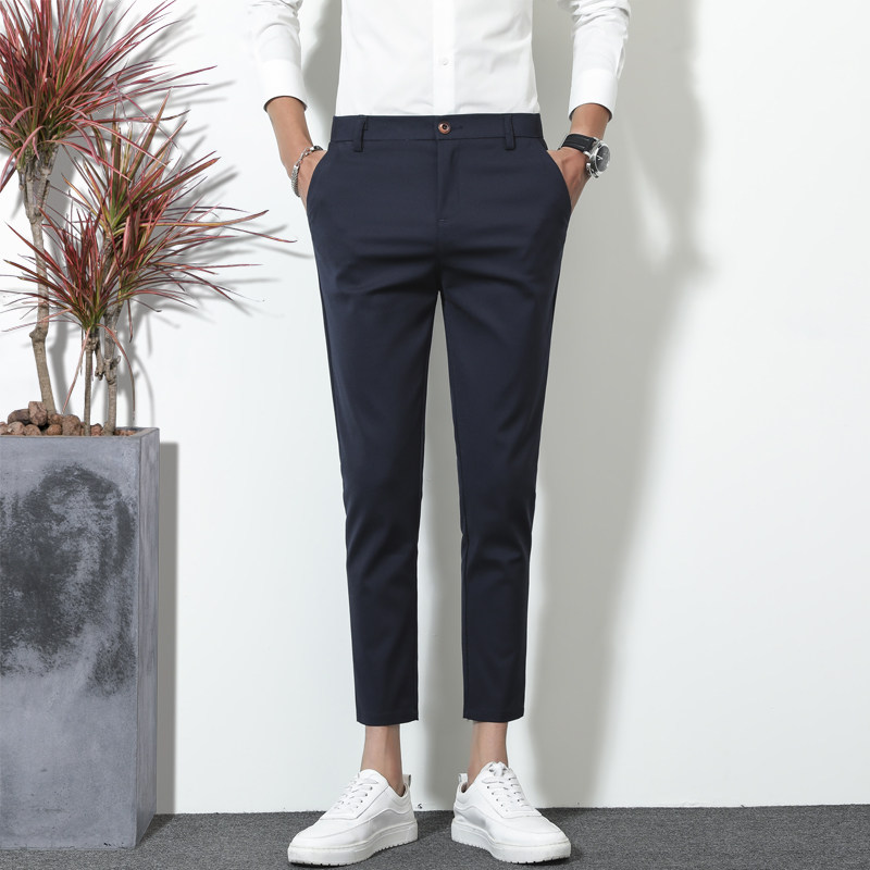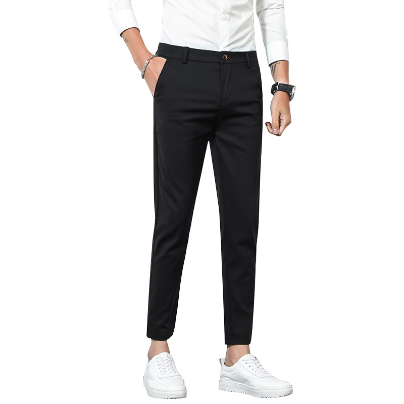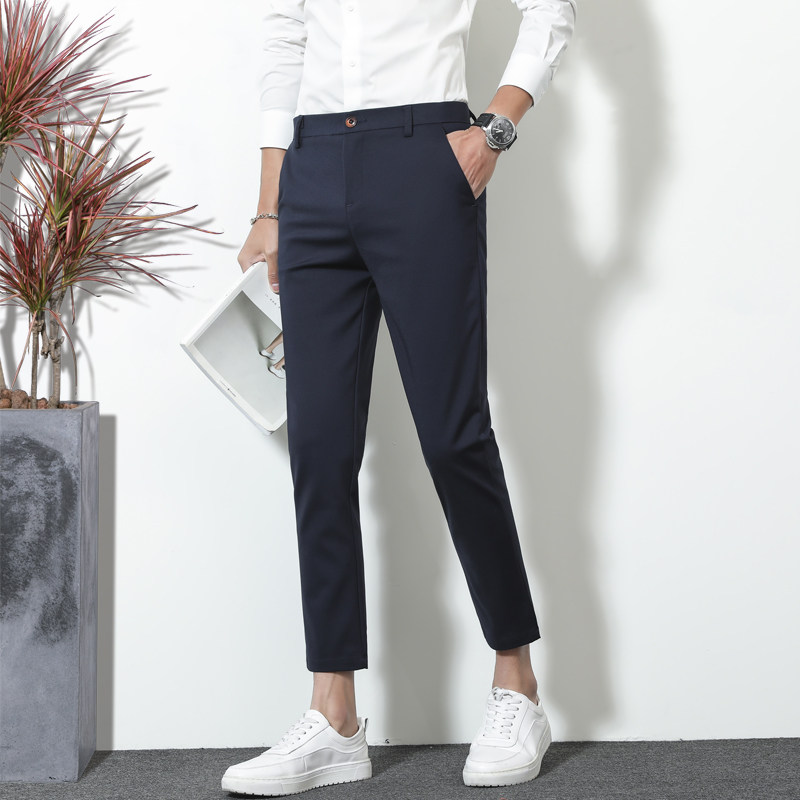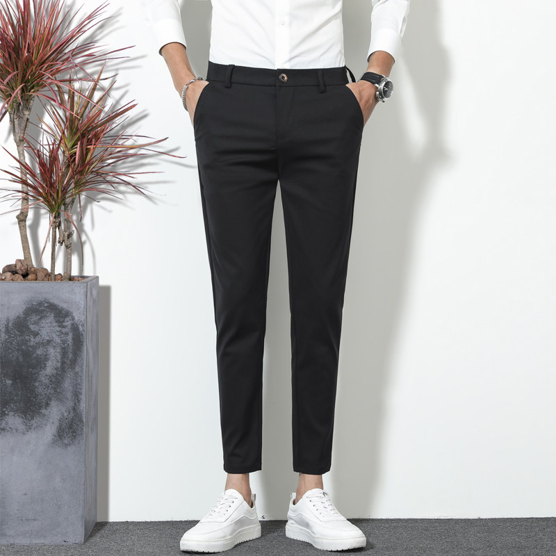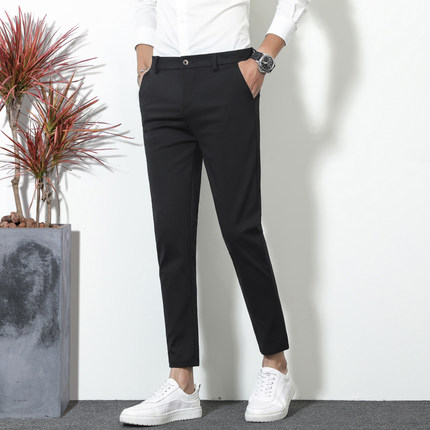 春季男士休闲裤小脚九分裤韩版修身抗皱垂感西裤百搭9分裤西装裤