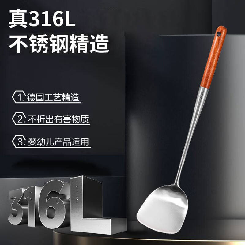爱仕达锅铲加厚316L不锈钢炒菜铲子汤勺家用炒勺铲勺套装厨房铲子