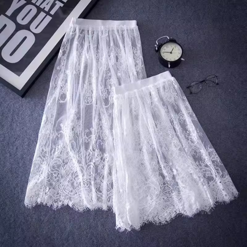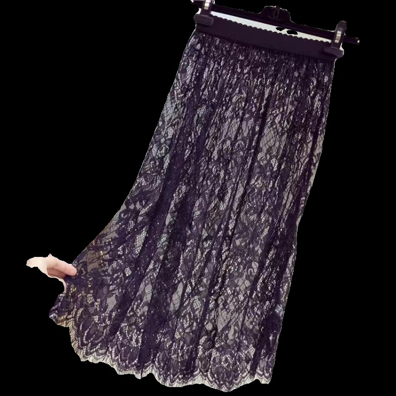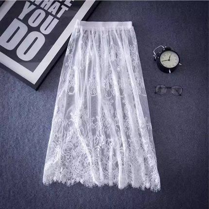 蕾丝打底裙单层性感蕾丝纱裙宽松大码半身裙内搭裙外搭裙衬裙罩裙
