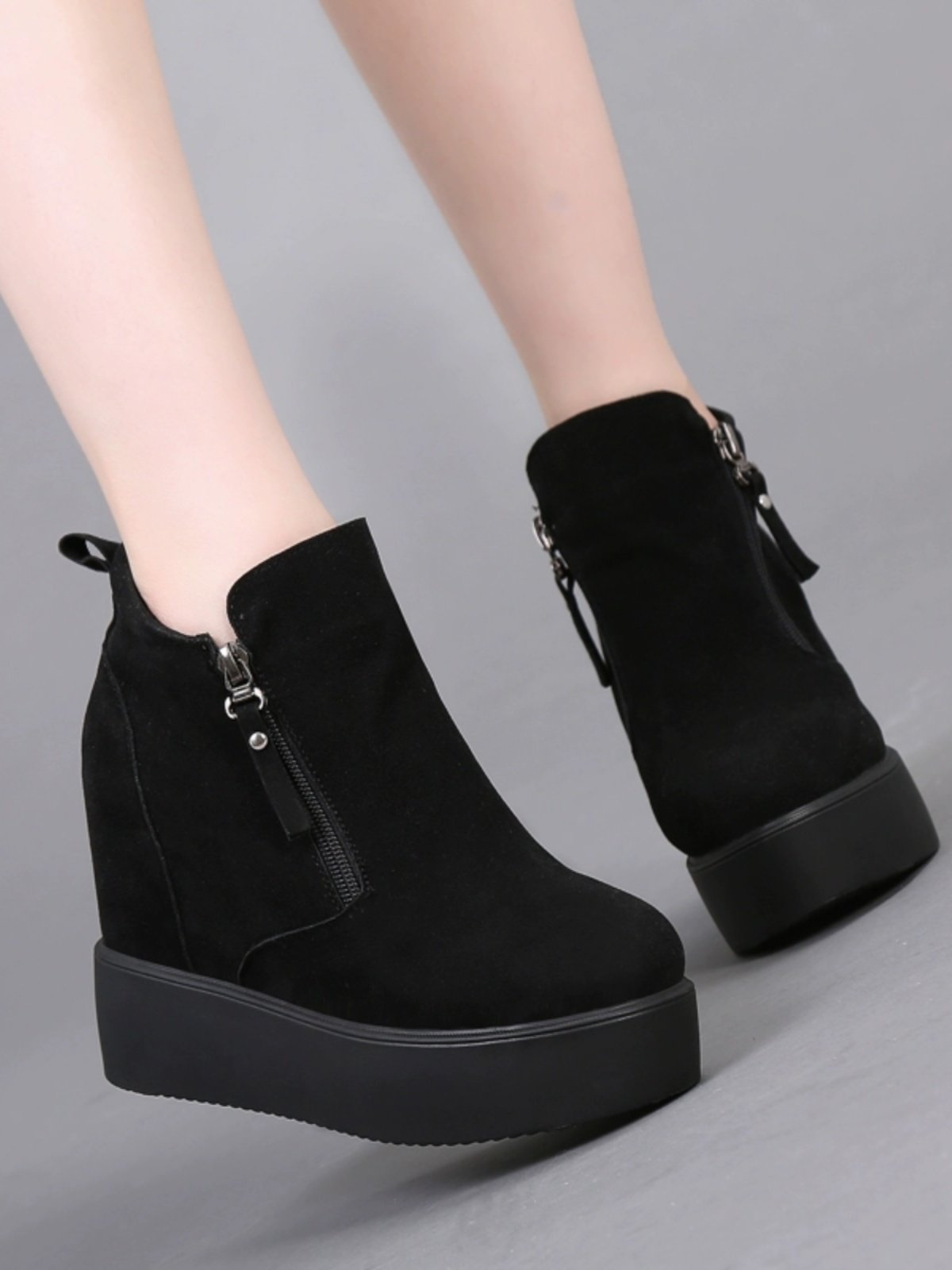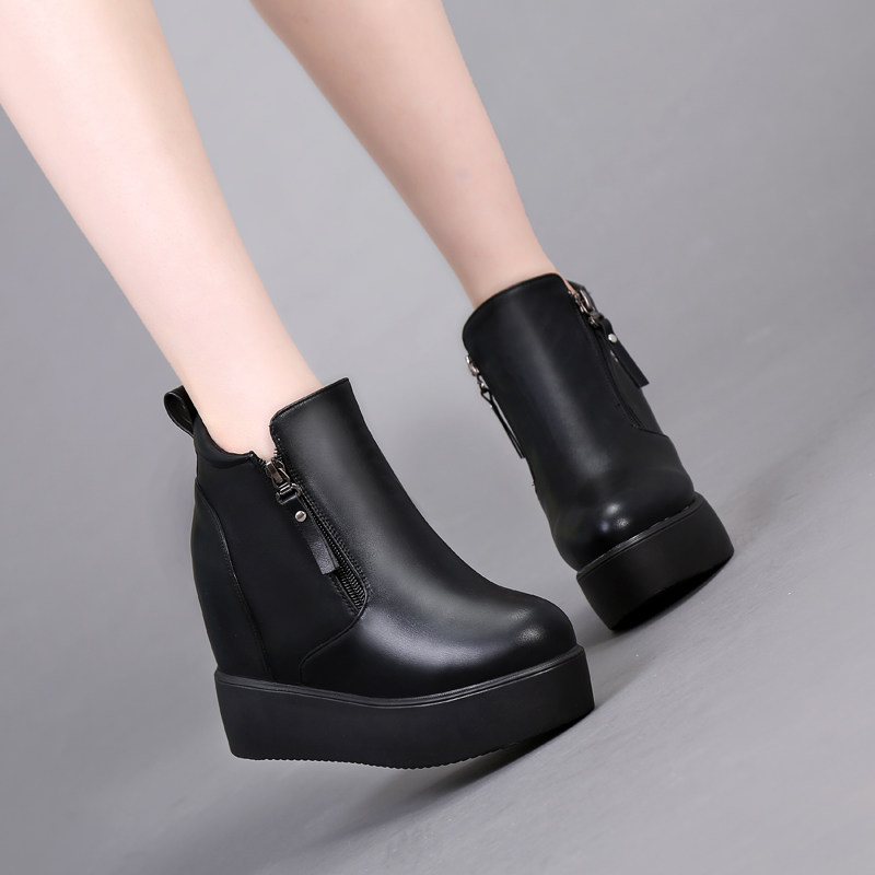 韩版短靴女秋冬款女靴子厚底防水台松糕坡跟内增高女鞋短筒靴34码