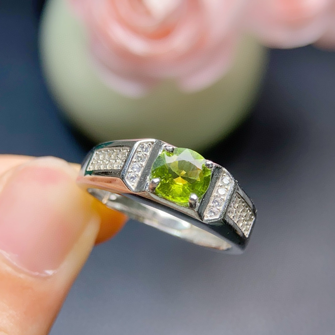 正品天然碧玺戒指男士个性霸气男戒纯银时尚男生求婚结婚钻戒