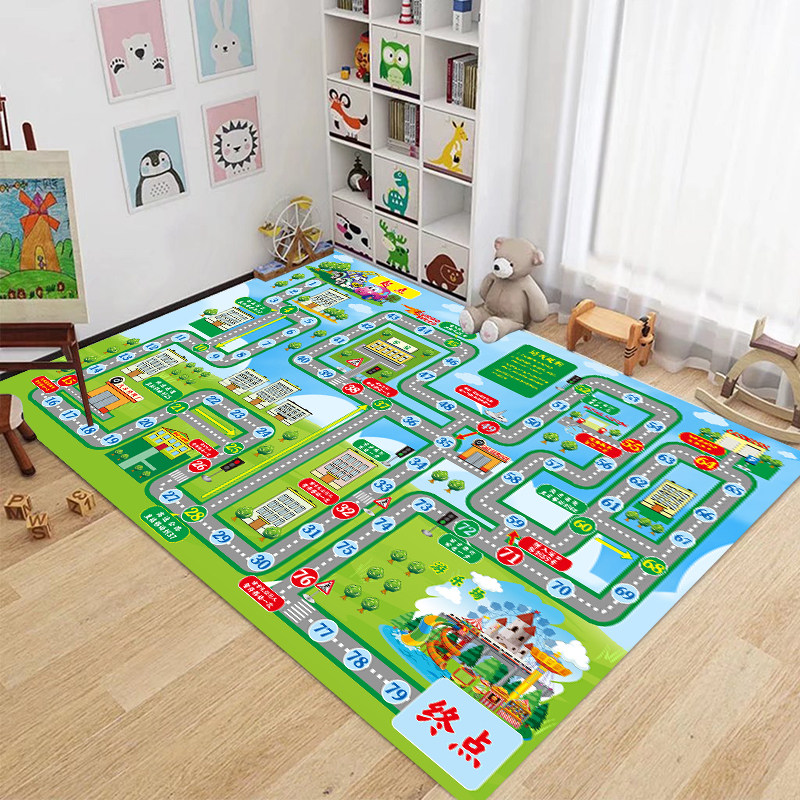 卡通停车场交通地毯宝宝幼儿园儿童房客厅卧室亲子游戏可机洗地垫