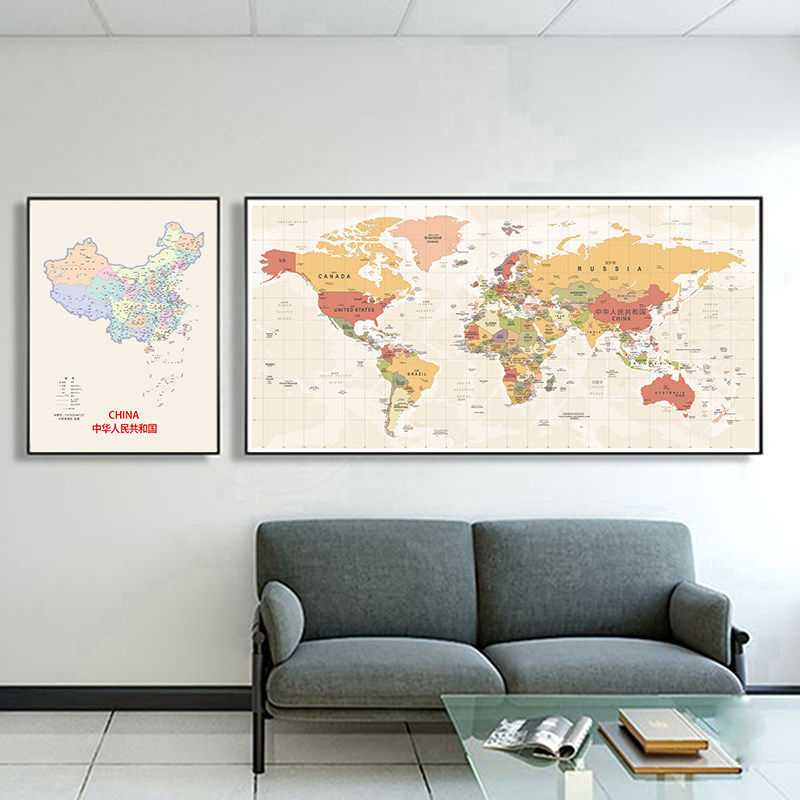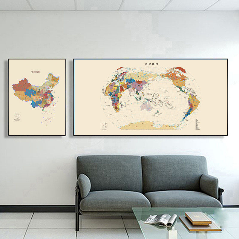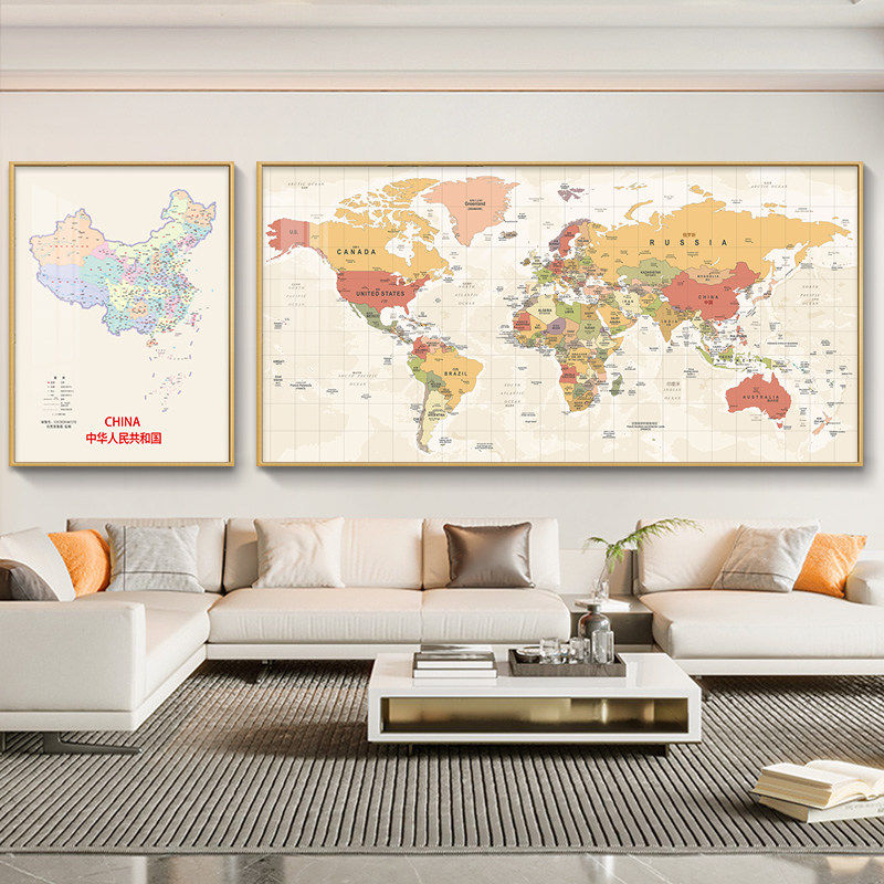 世界地图客厅装饰画沙发背景墙壁画办公室书房儿童房定制中国挂画