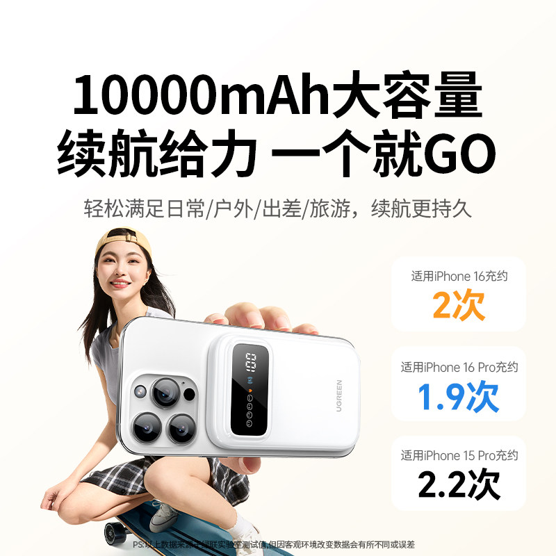 【充电宝3C认证可上飞机】绿联2026新款无线磁吸充电宝10000毫安适用苹果17快充小巧便携移动电源官方旗舰店