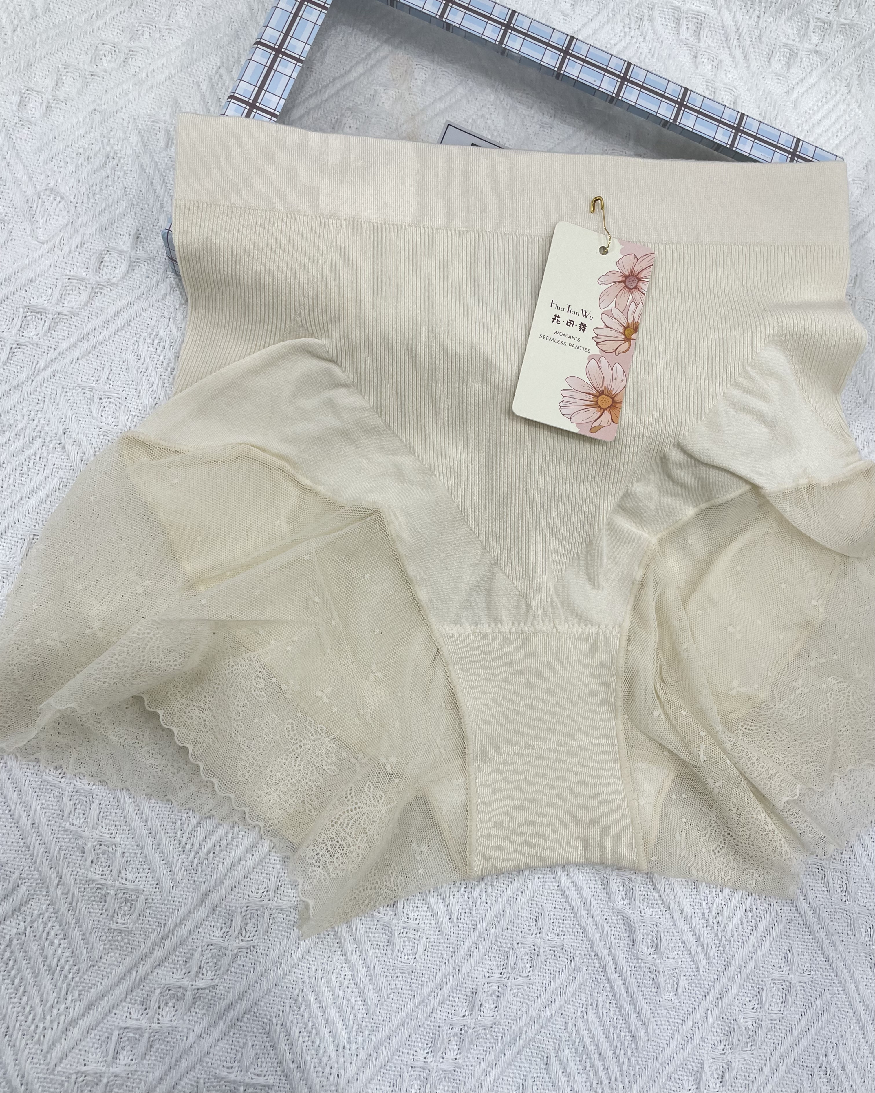 花田舞2503女中高腰无缝内裤蕾丝小平角三角裤高弹包臀满3条包邮