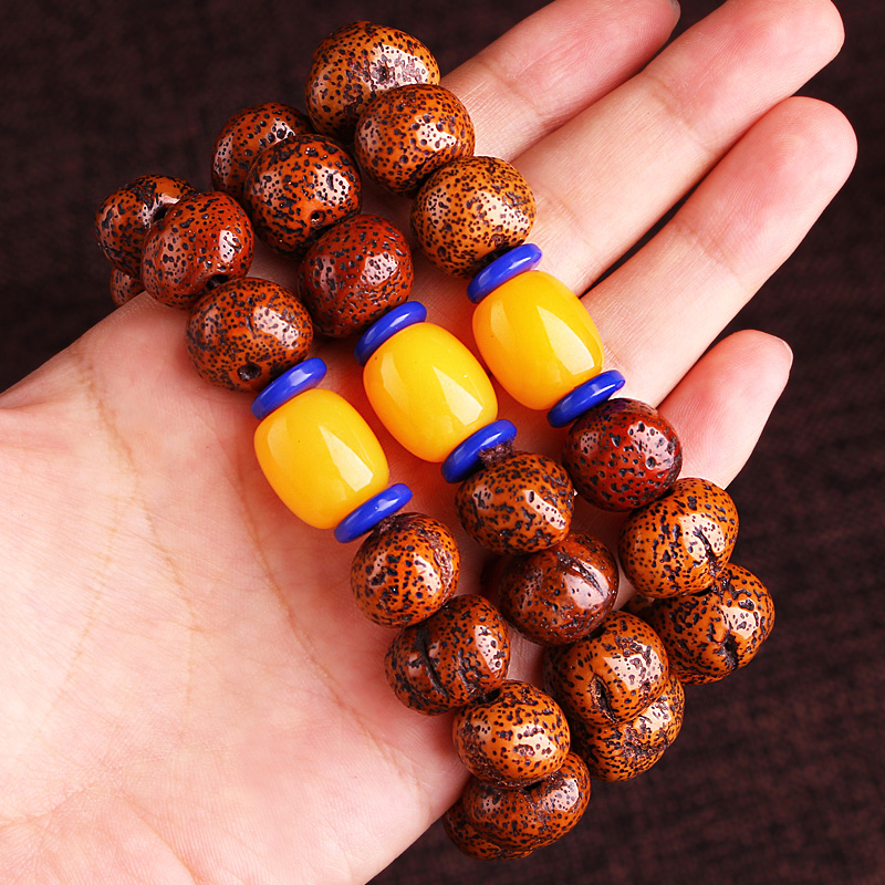 海南元宝星月菩提原籽手串大金蝉子手链文玩金蟾老料收藏菩提子