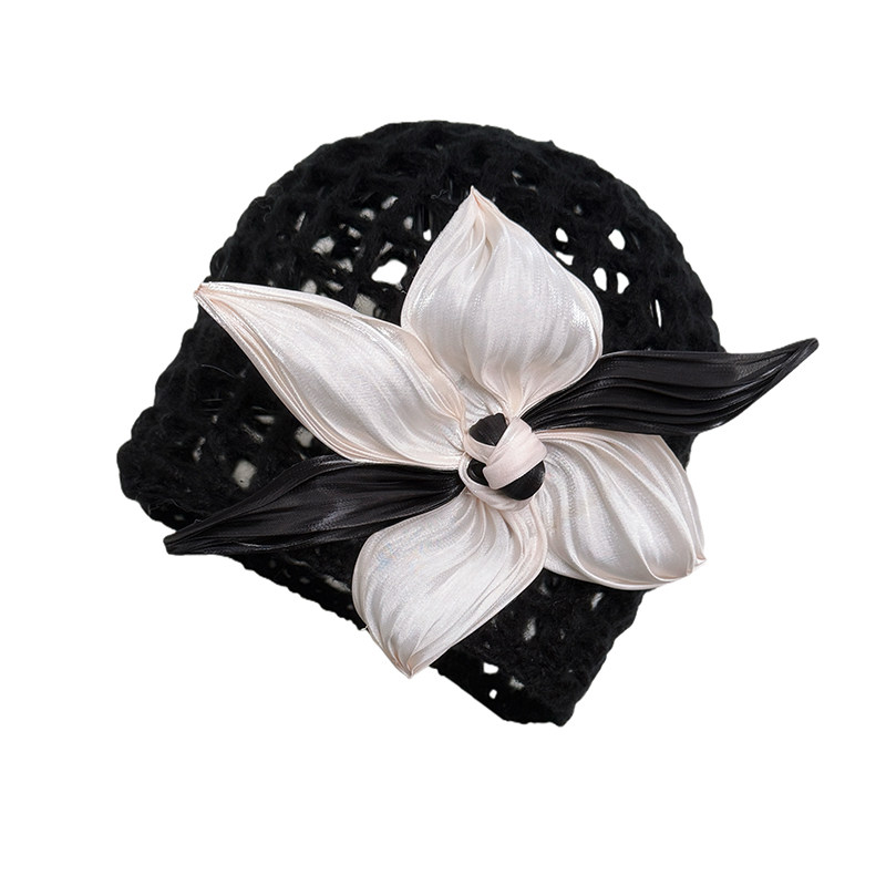 韩系新款手工编织立体花朵针织帽女秋冬季时尚氛围感显脸小包头帽