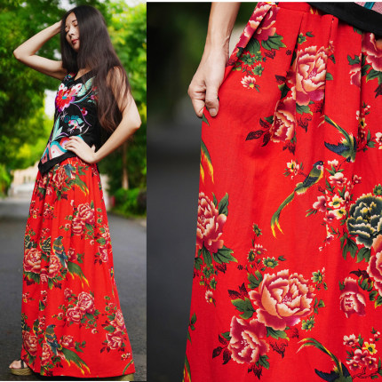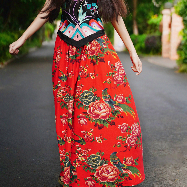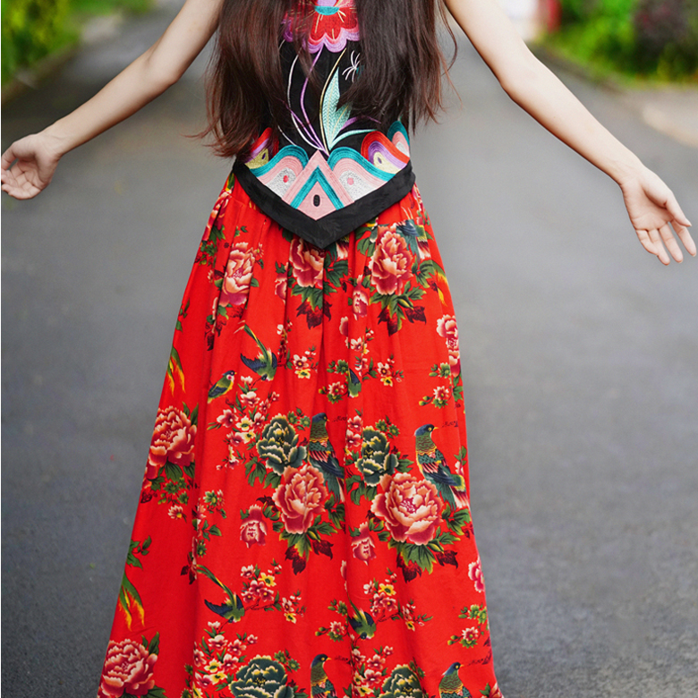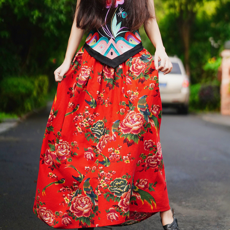 此岸歌声*原创设计店-红色土花布长蓬裙 被珍惜的情意