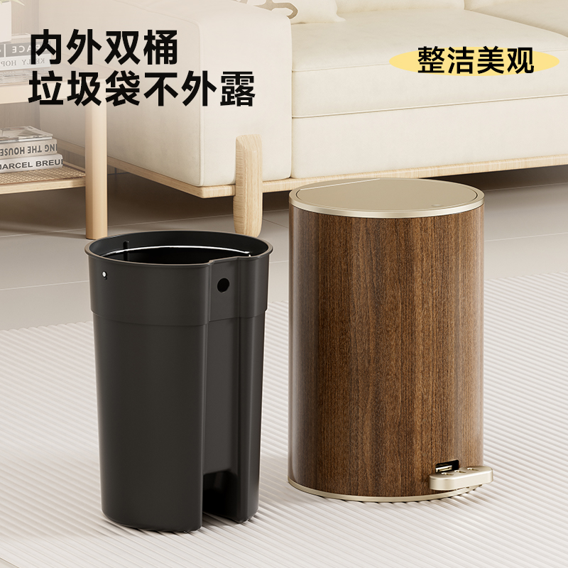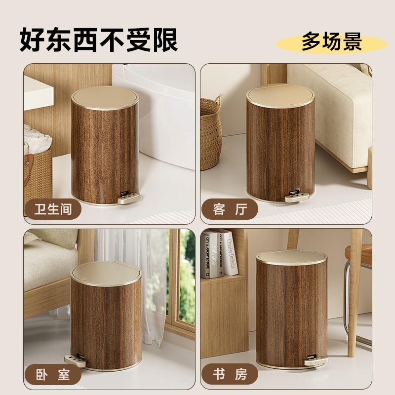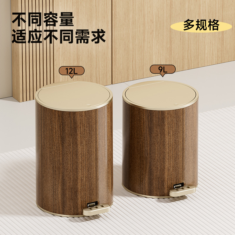 新中式垃圾桶家用客厅脚踩厨房卧室办公室脚踏高颜值木纹轻奢高档