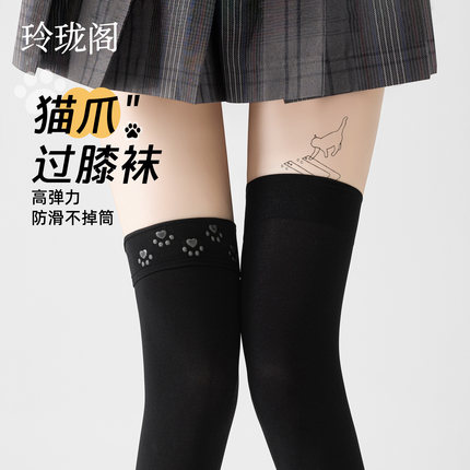 黑色过膝袜女天鹅绒春夏防滑瘦腿压力袜jk长筒袜丝袜高筒袜小腿袜