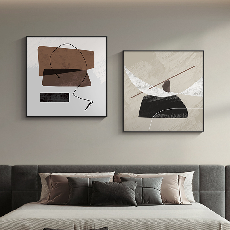 极速现代简约卧室床头装饰u画抽象沙发背景墙壁画侘寂风正方形客