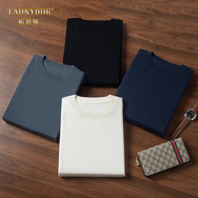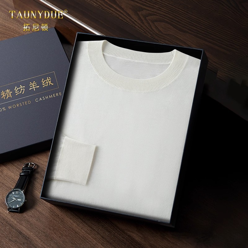 鄂尔多斯市圆领精纺薄款纯山羊绒衫男士秋针织打底衫高端毛衣男款