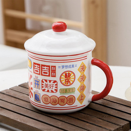 敏杨好事来陶瓷盖杯防烫手柄
