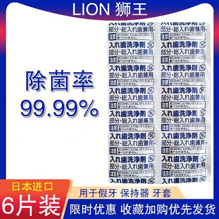 日本进口狮王假牙清洁片6片 清洁剂泡腾片保持器牙套清新口气口臭