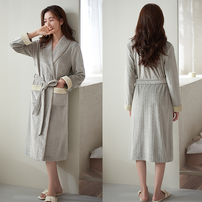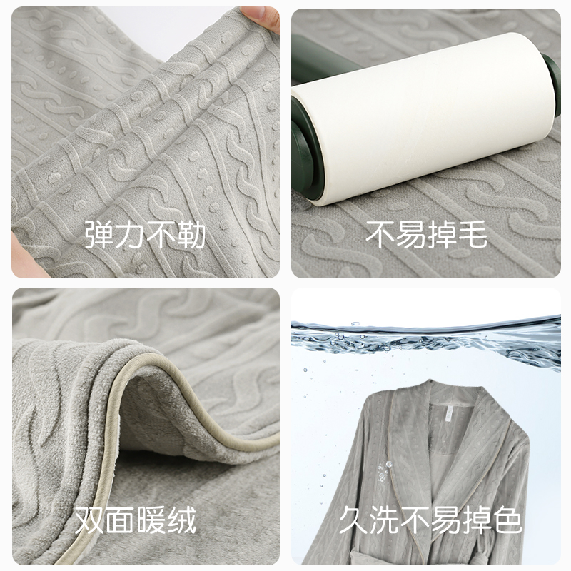 轩靓情侣睡袍女秋冬季加绒加厚款睡衣海岛绒珊瑚绒浴袍男士家居服