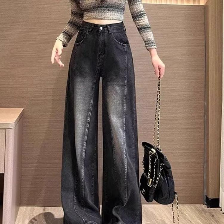 阔腿牛仔裤女黑灰色垂感直筒裤