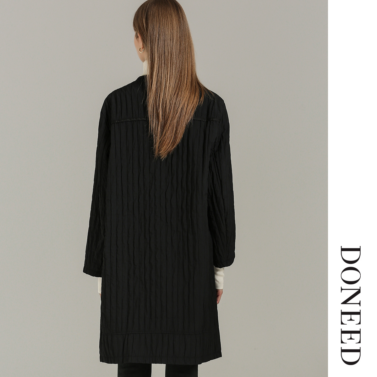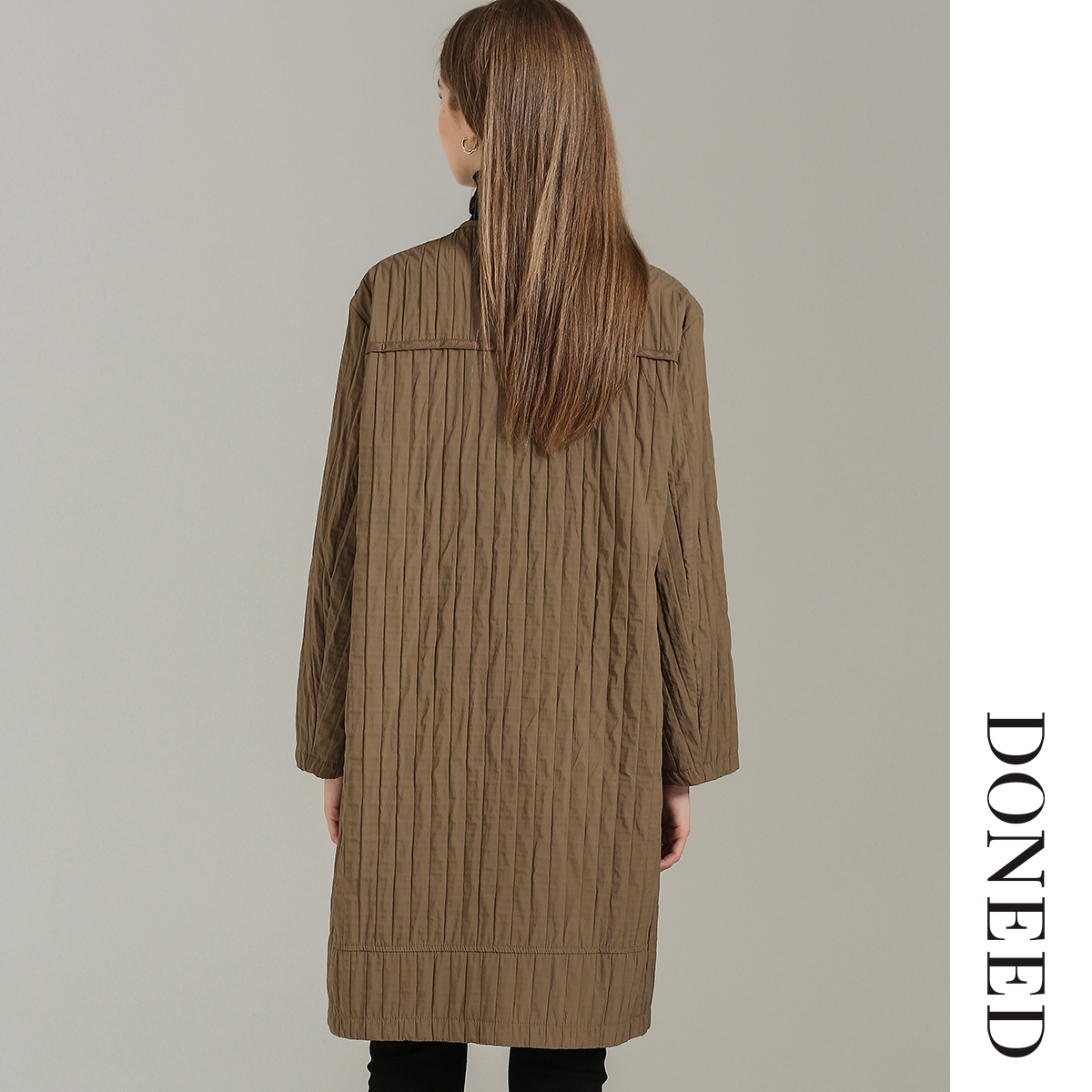 DONEED春秋款极简风圆领廓形感落肩显瘦条纹加棉保暖棉风衣外套女