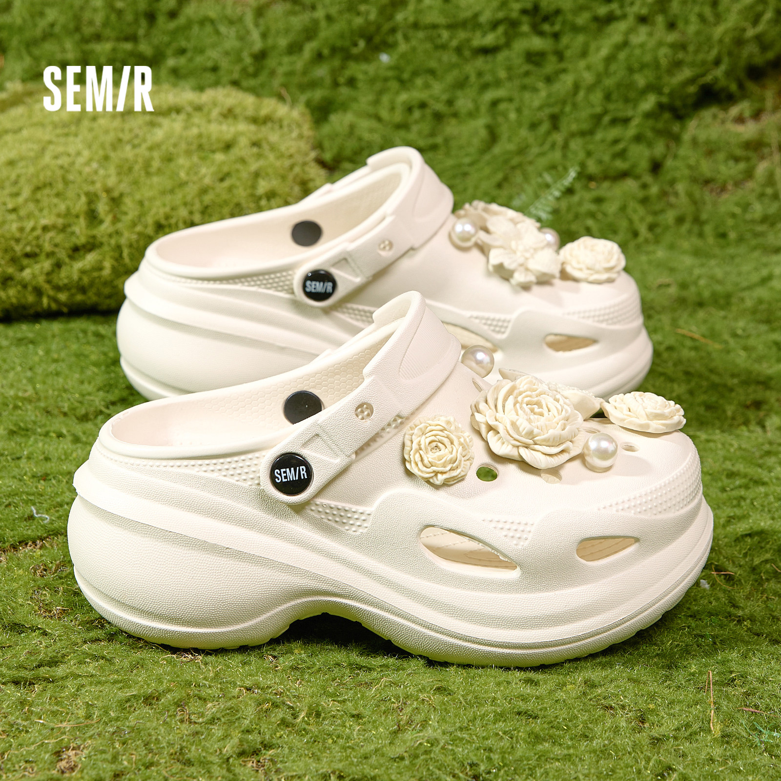Semir女鞋洞洞鞋2026夏季新款泡芙户外沙滩鞋包头高跟厚底凉拖鞋