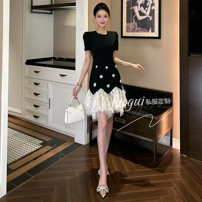 赫本风减龄设计感小众a字连衣裙拼接网纱高级感优雅显瘦小黑裙女