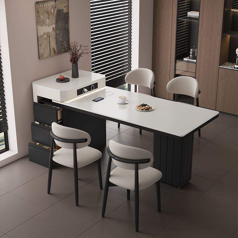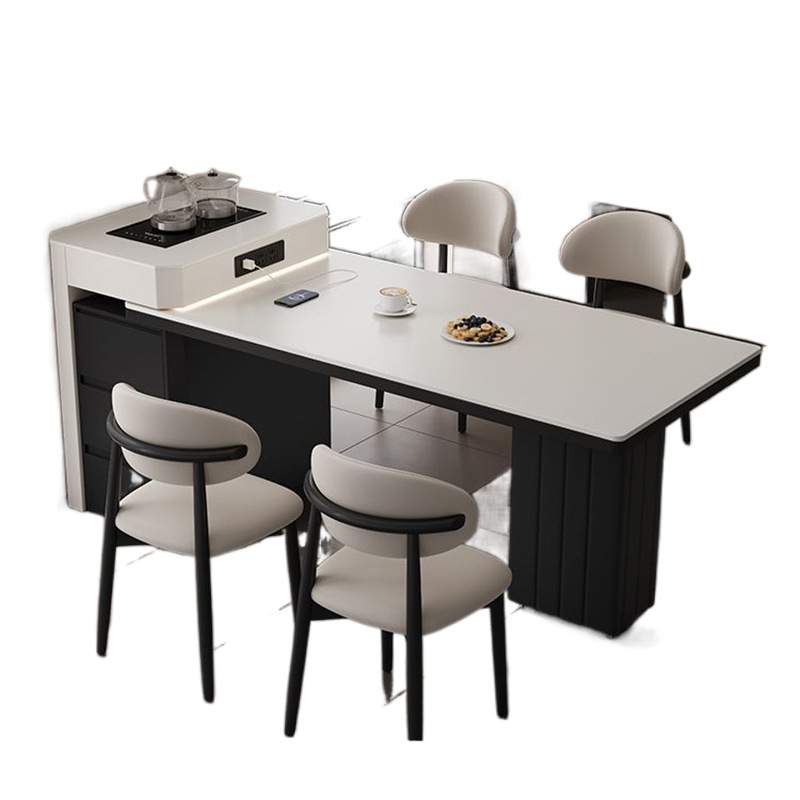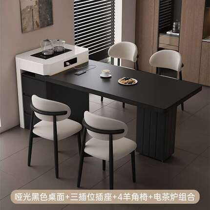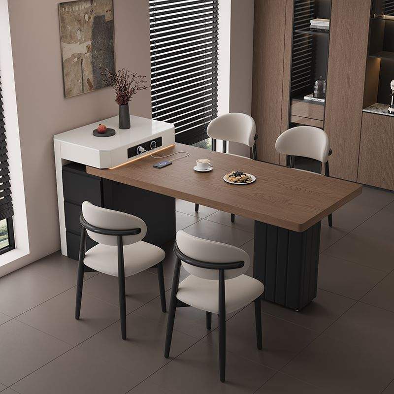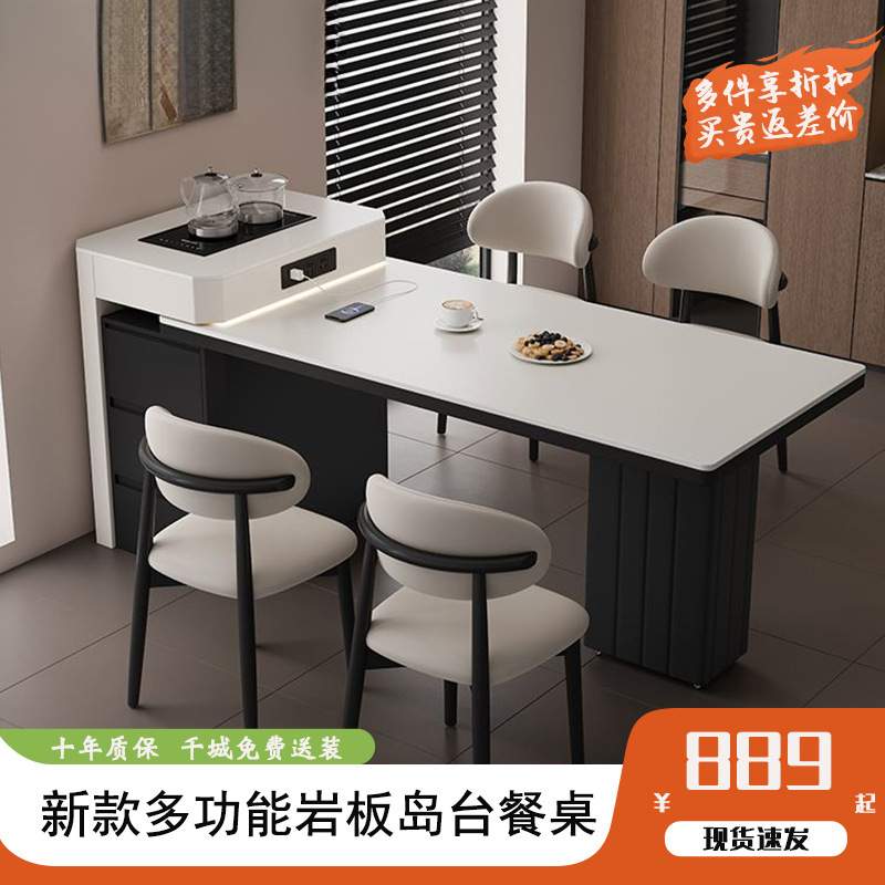 实木岛台餐桌一体现代简约岩板多功能伸缩家用小户型高端吃饭桌子
